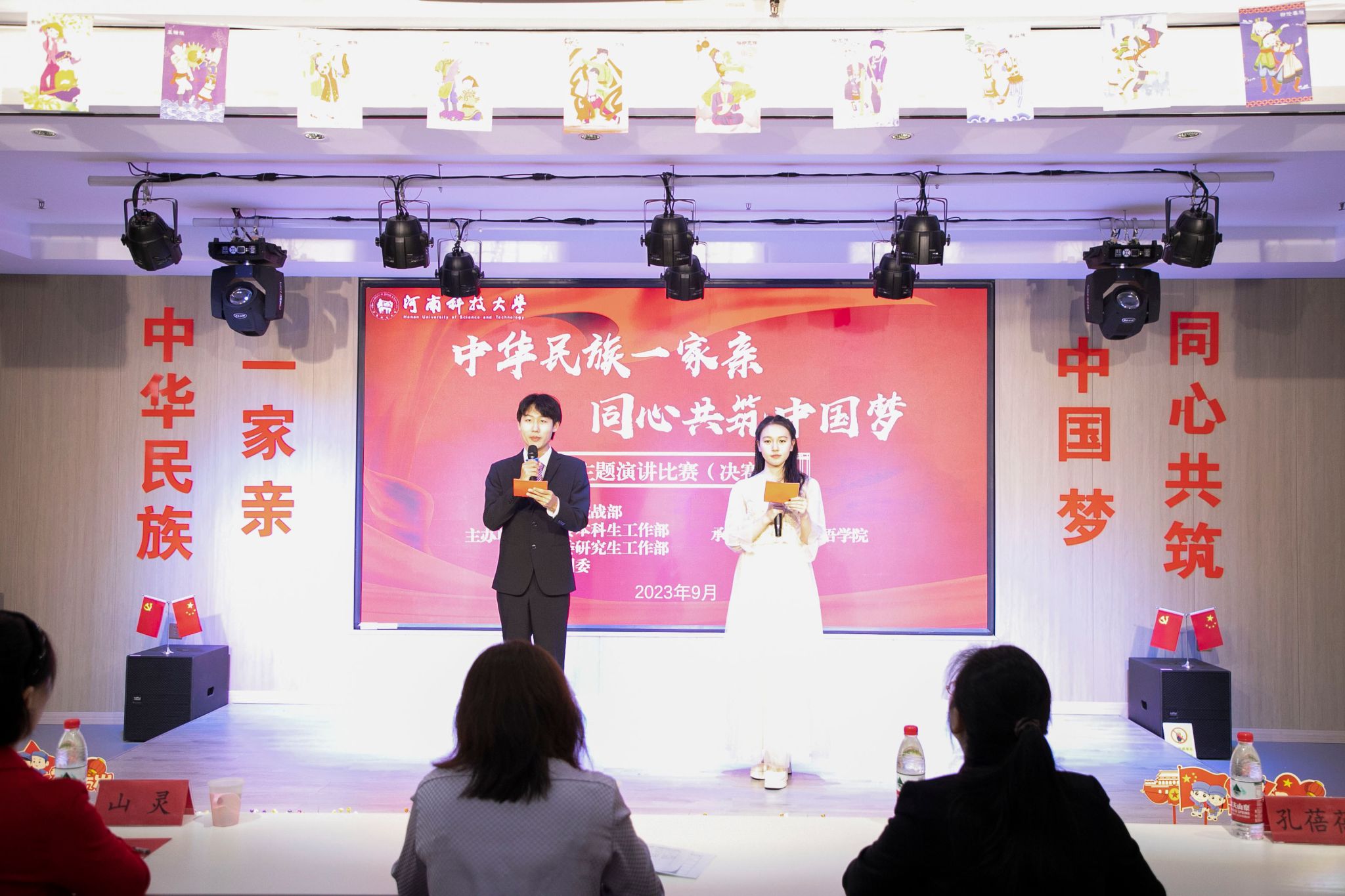 校新闻中心讯 9月28日,河南科技大学“中华民族一家亲 同心共筑中国梦”主题演讲比赛决赛在文科1号楼S307多功能厅举办。校党委副书记、工会主席杨霞出席活动,党委宣传部、统战部、本科生工作部、研究生工作部、校团委等部门负责人参加活动。