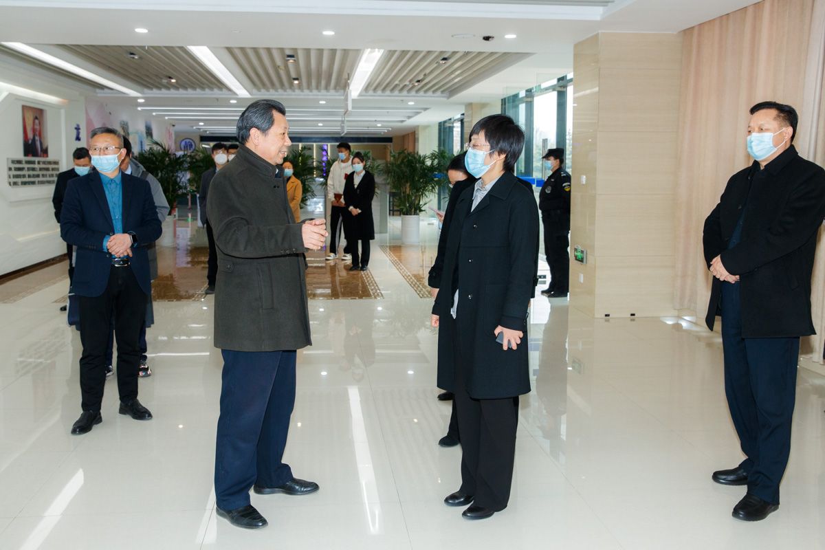 在龙门实验室展厅,校长孔留安向王飞介绍了龙门实验室建设和学校科技创新情况。